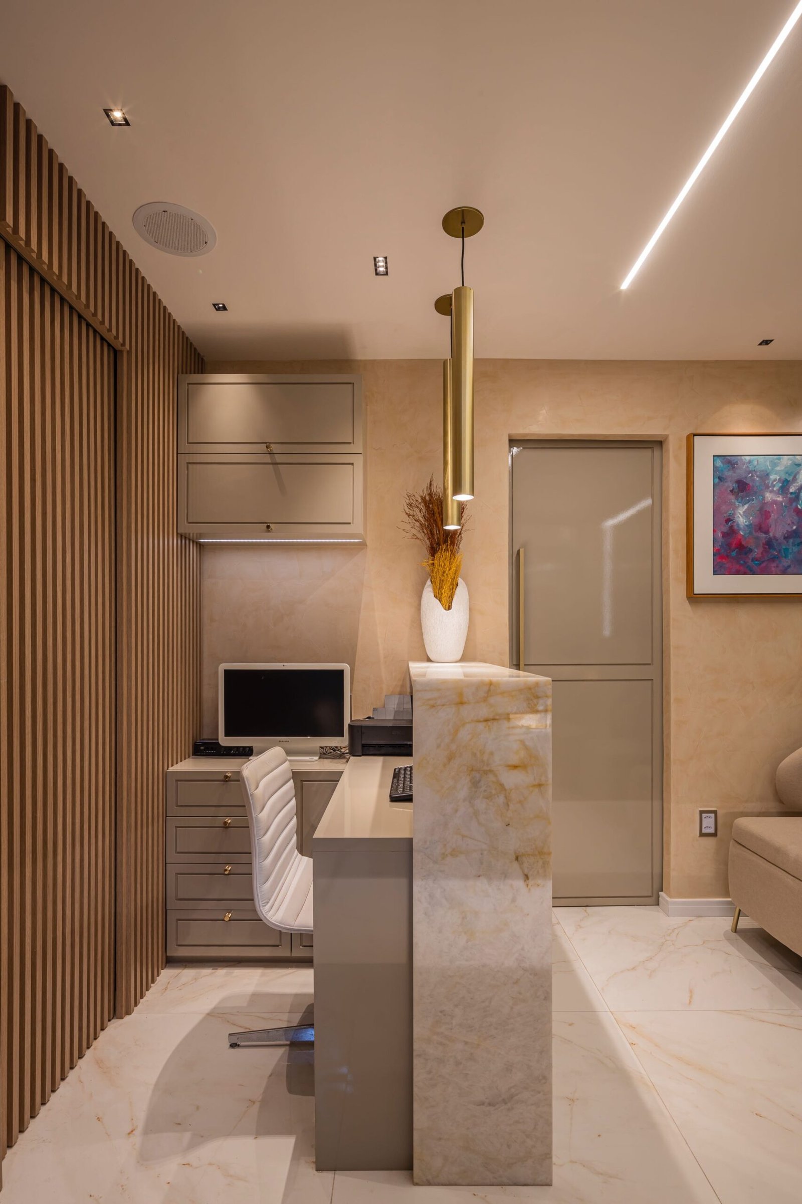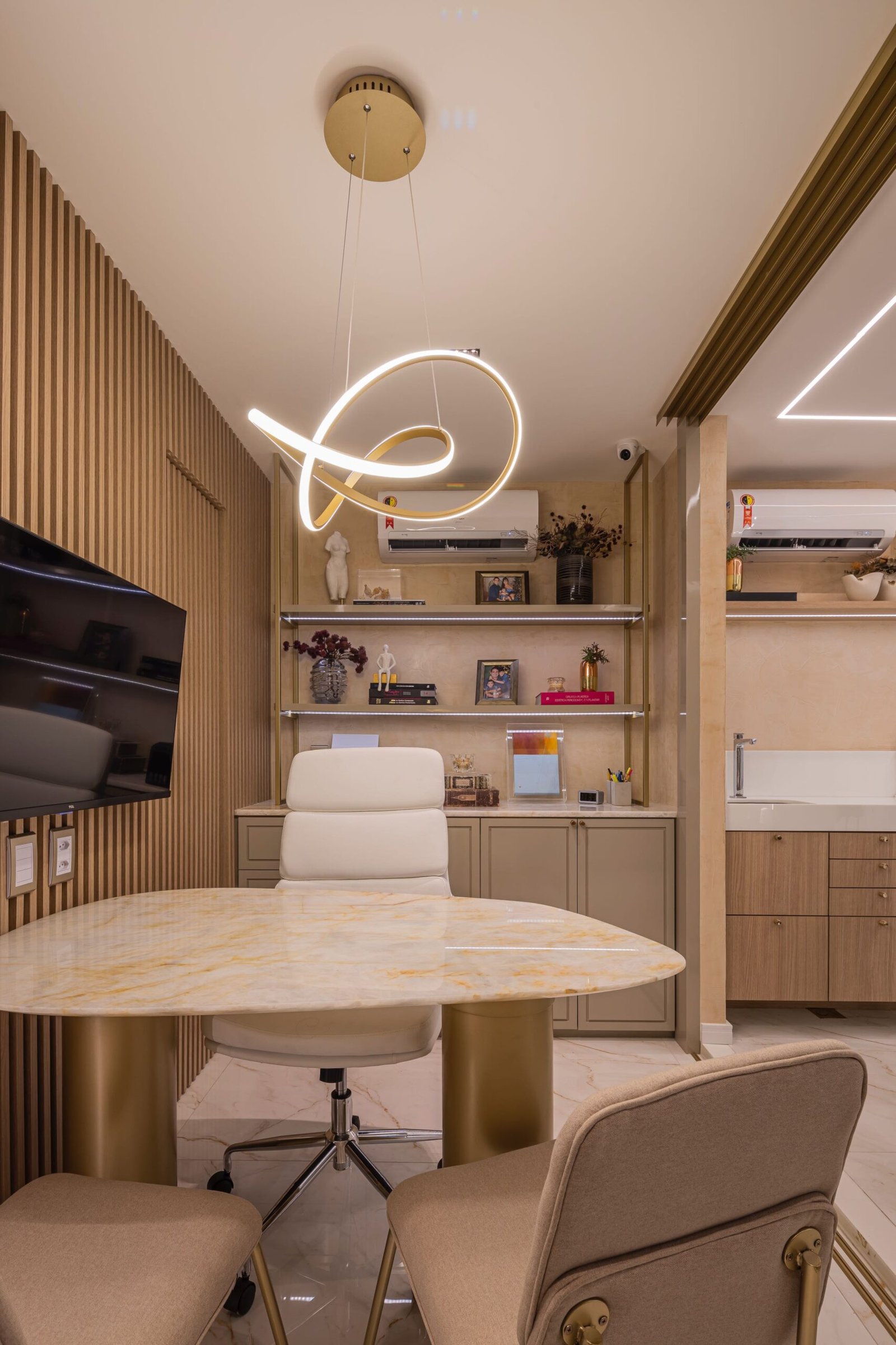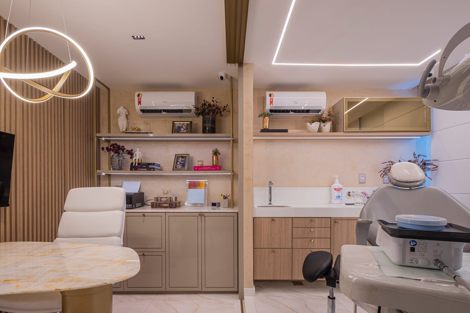 Design funcional e acolhedor de um projeto do Consultório Odontológico que foi desenvolvido com o objetivo de criar um ambiente que equilibre funcionalidade, modernidade e acolhimento. Cada detalhe foi pensado para proporcionar conforto aos pacientes, desde a recepção que foi projetada de forma acolhedora e design clean até a área de atendimento que foi cuidadosamente planejada para otimizar o espaço de trabalho, garantindo a fluidez entre as cadeiras odontológicas e os equipamentos.