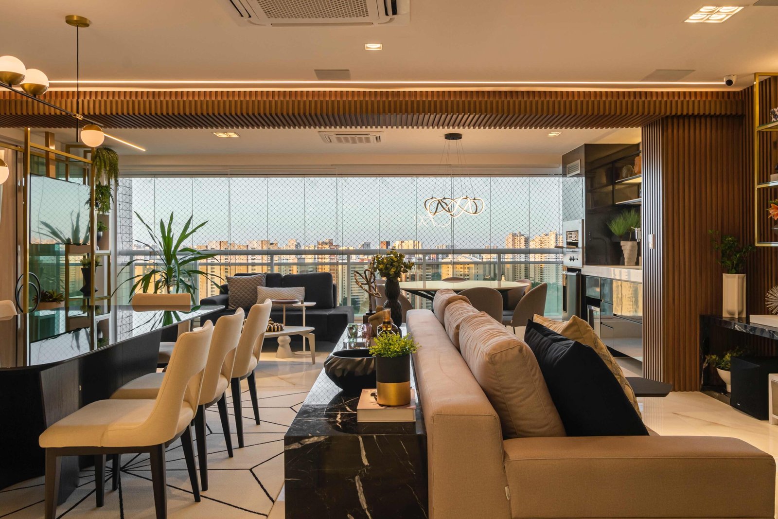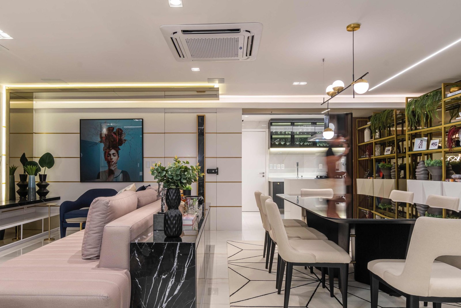 DAVI E MARILIA Este projeto residencial demonstra a combinação de tons escuros e detalhes em dourado que resultaram em um espaço acolhedor e convidativo. A harmonia entre os elementos proporciona uma experiência de vida que exala sofisticação e conforto.