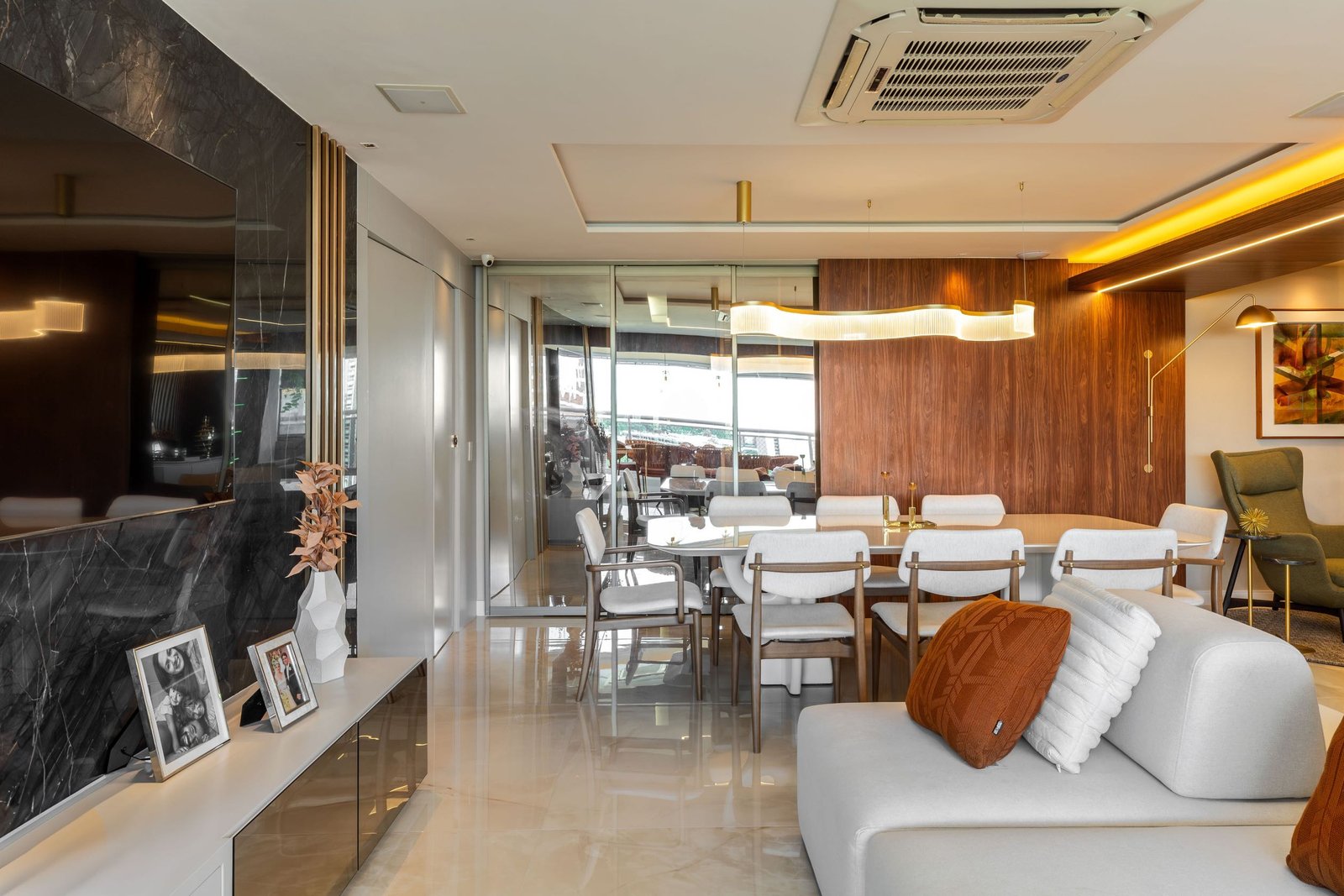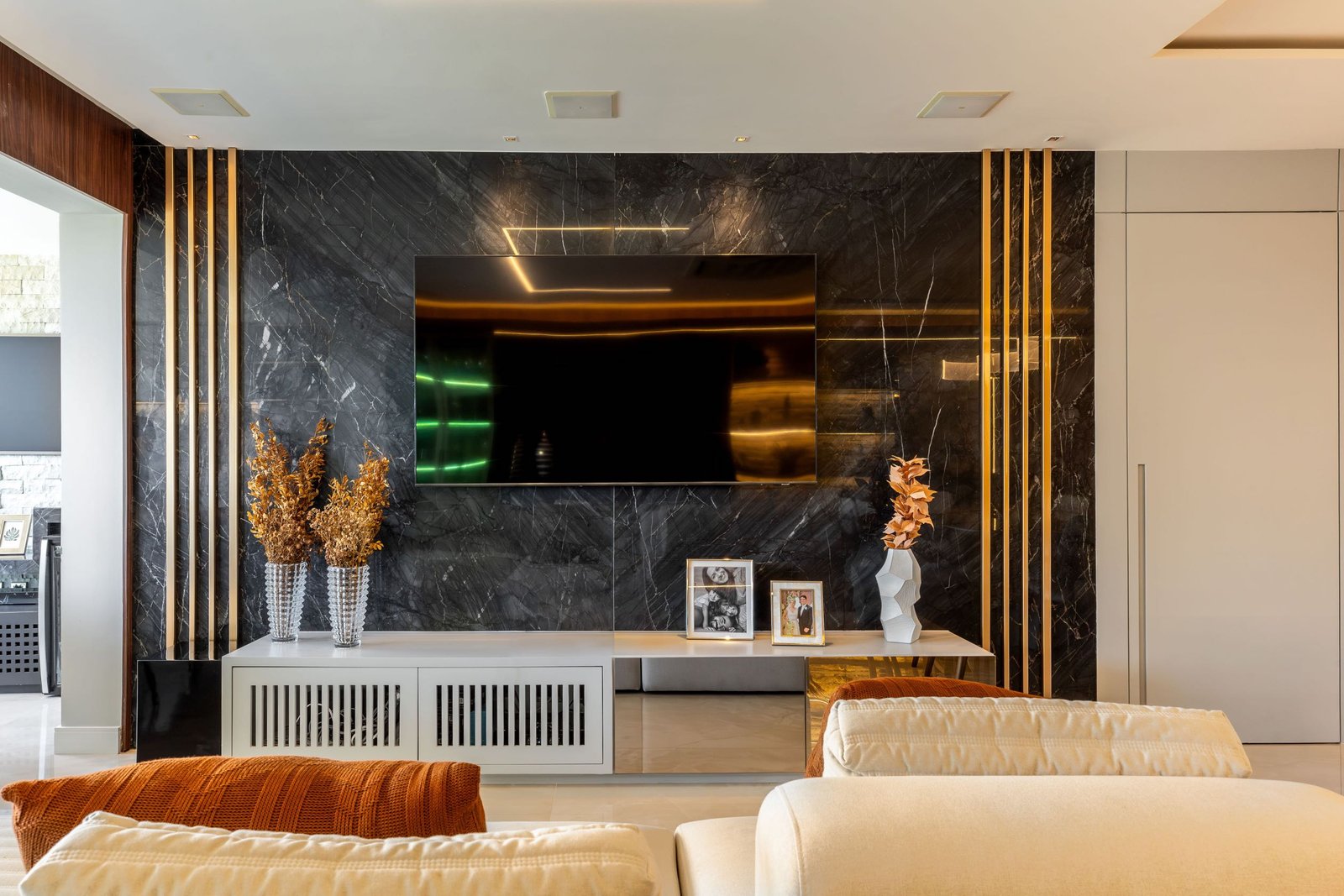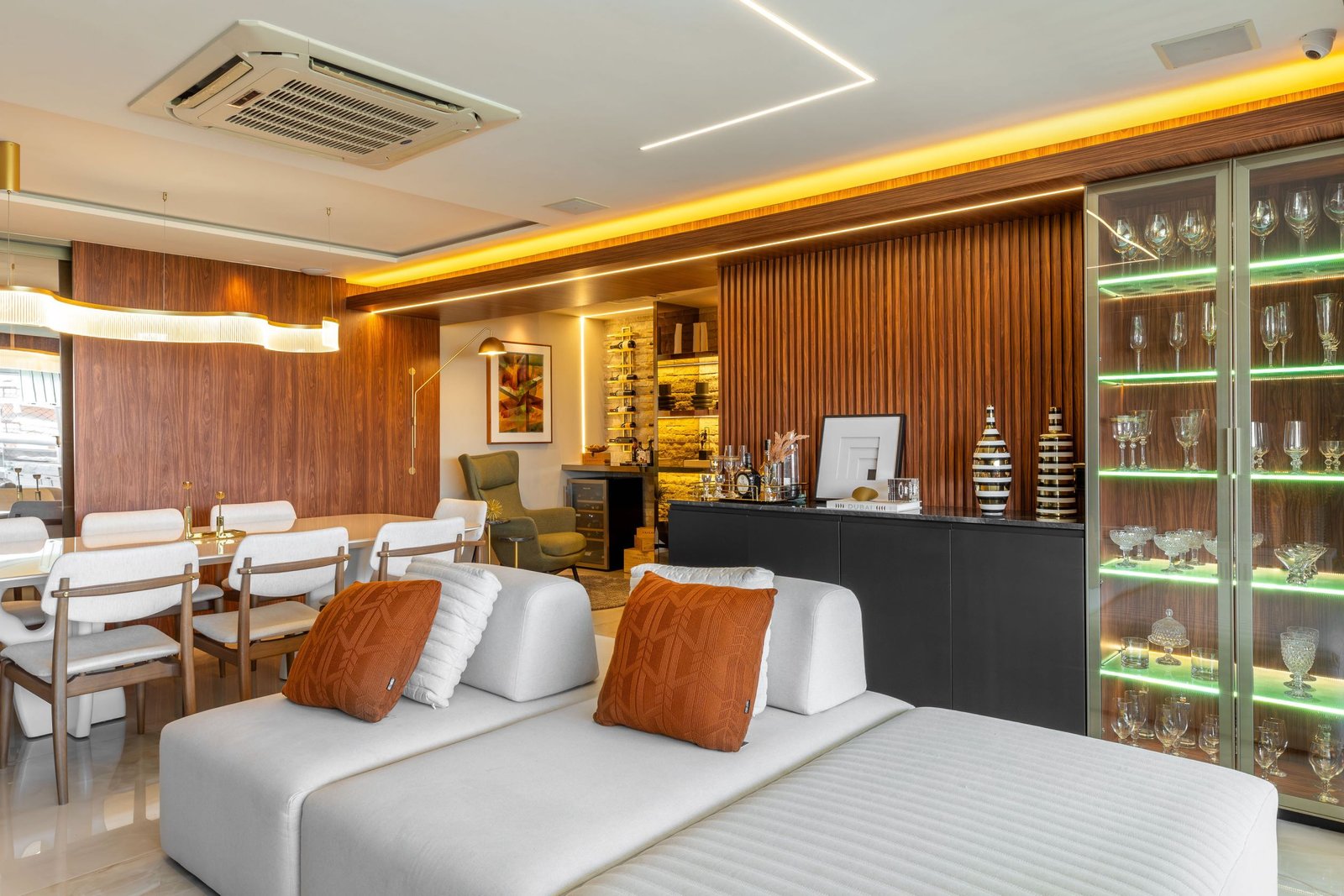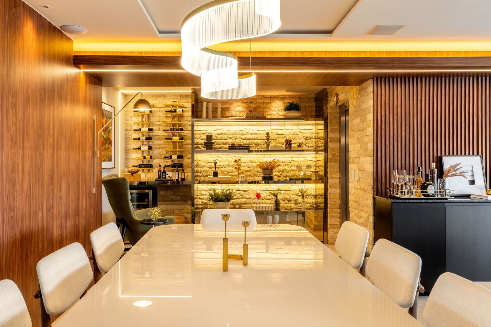Residencial com uma combinação harmoniosa de cores sóbrias e texturas sofisticadas para a idealização de um ambiente acolhedor e contemporâneo. As texturas desempenham um papel essencial no projeto, adicionando profundidade e dinamismo aos espaços. Cada detalhe foi pensado para promover um ambiente funcional e ao mesmo tempo visualmente impactante.