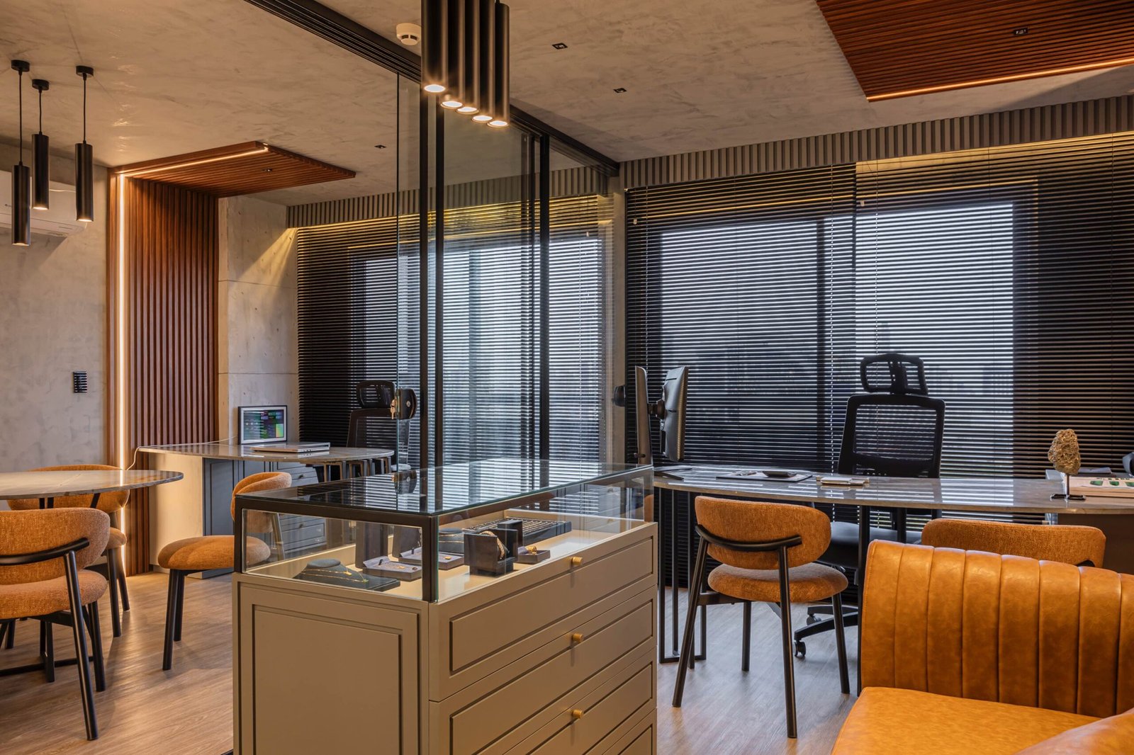 Projeto pensado para refletir o luxo das joias, com um design inteligente onde a elegância e funcionalidade existissem perfeitamente em um espaço compacto. Com soluções sob medida, cada detalhe foi aproveitado para maximizar a experiências dos clientes, em um ambiente sofisticado e acolhedor.
